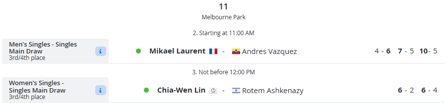 - A.Vázquez/G. Flindell vs O.Grave/M.Laurent (7-6/6-4).